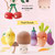 "Wir feiern eine Fruchtparty – und eingeladen sind nicht nur fröhliche Früchte, sondern auch gut gelaunte Veggies! Die Figuren sind clean, grafisch und reduziert gestaltet und haben freundliche Gesichter. Das macht sie modern und verspielt zugleich. Gehäkelt werden die niedlichen Figuren zum Großteil mit dem Garn Ricorumi Spin Spin.